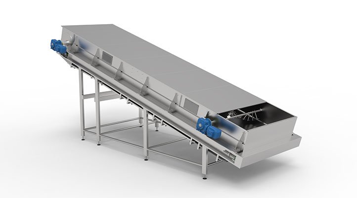 3打粉機構采用螺旋式打粉桿,打粉速度與輸送帶速度同步,確保面團小顆粒均勻喂料,保證了壓片均勻。